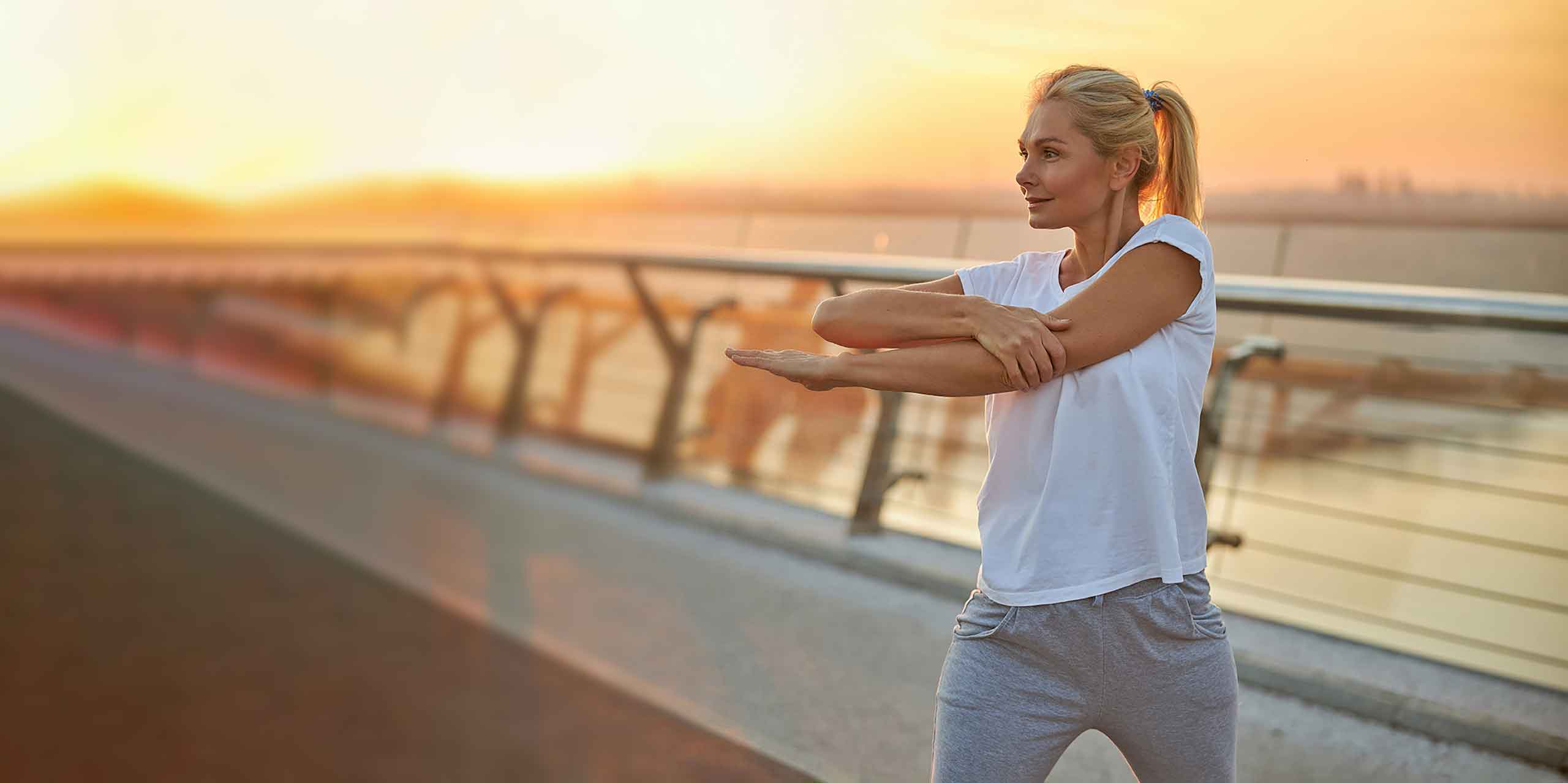 Regelmäßiger Sport ist eines der effektivsten Mittel zur Verlangsamung des Alterns, besonders, wenn es sich um Aktivitäten an der frischen Luft handelt, wie Joggen oder Radfahren. Diese helfen beim Abbau von freien Radikalen und steigern die Blutzirkulation im Körper – beides wirkt sich u. a. positiv auf die Hautalterung aus.